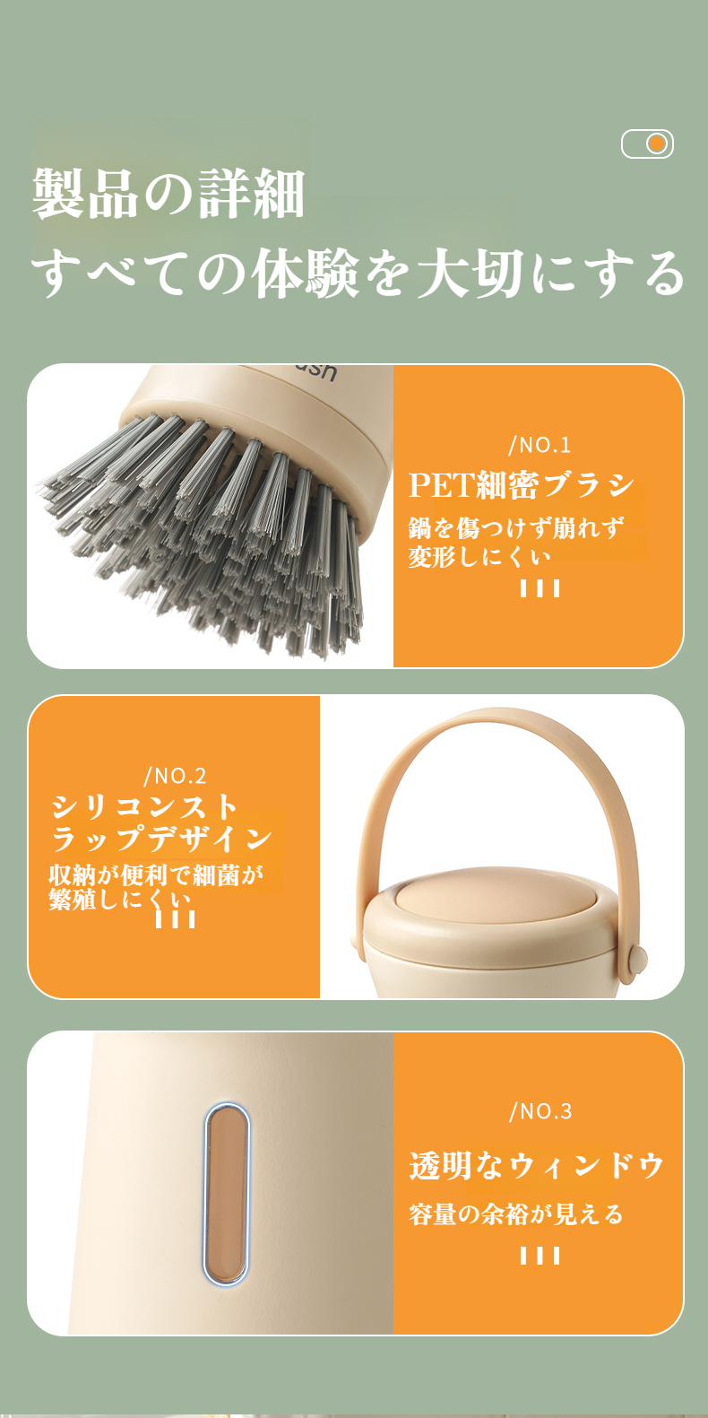 家庭用キッチンブラシの握りやすいハンドル